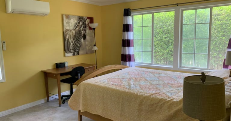 Enjoy a comfortable stay in our solo queen room with self-controlled AC, featuring a shared bathroom with one other female guest.