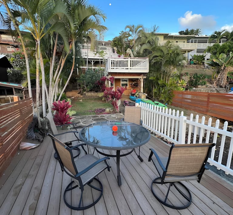 Stay in a private beachfront property where the sound of the waves, golden sunsets, and open-air living create a serene and elevated escape. Wake up to ocean views, morning sunrises right from our 3 tier deck (lani), enjoy slow mornings by the pool, and unwind with curated experiences that highlight the beauty and culture of Hawaii, all without the stress of planning and the city crowds.